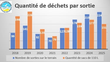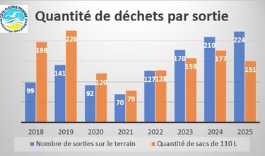 Plus de 125 mètres cubes de déchets divers ramassés sur les plages en 8 ans qui ne retourneront pas à la mer.